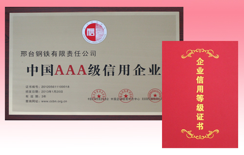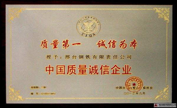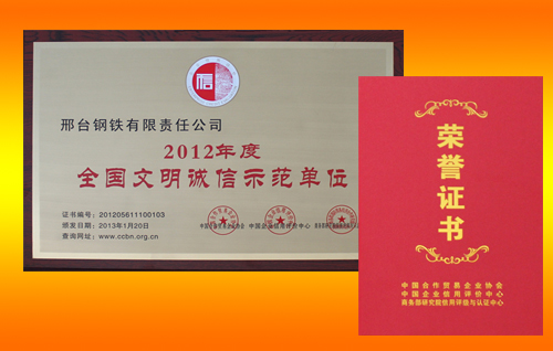 - 邢鋼榮獲“2012年度全國(guó)文明誠(chéng)信示范單位”稱(chēng)號(hào)
