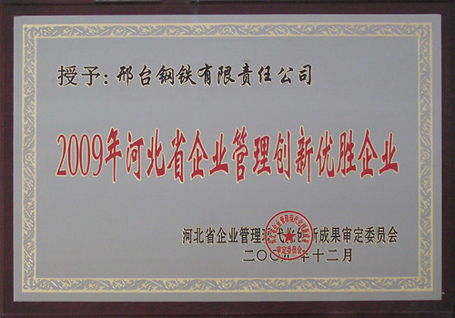 2010年6月,邢鋼榮獲“2010中國(guó)最佳自主創(chuàng)新企業(yè)”稱(chēng)號(hào)