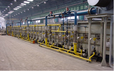 4、索氏體化淬火:采用熔融的鉛作為淬火劑,在600℃左右完成鋼絲組織由奧實體化向索氏體化的轉變。采用燃氣分二段供熱,各段單獨控溫,根據(jù)鉛溫要求及時調整供熱負荷。