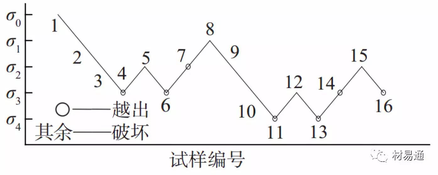 試驗(yàn)方法:(1)試驗(yàn)從高于疲勞強(qiáng)度的應(yīng)力水平開始,然后逐級(jí)降低(如疲勞強(qiáng)度未知,可選用材料的靜態(tài)拉伸屈服強(qiáng)度Rp0.2或ReL);(2)在應(yīng)力水平下進(jìn)行第一根試驗(yàn),如果在指定壽命N=107次之前發(fā)生破壞,則下一根試樣就要在低一級(jí)的應(yīng)力水平下進(jìn)行,反之,則要在高一級(jí)的應(yīng)力水平下進(jìn)行,直至完成全部試樣;(3)各級(jí)應(yīng)力水平之差叫做“應(yīng)力增量”,在整個(gè)試驗(yàn)過程中,應(yīng)力增量應(yīng)保持不變。