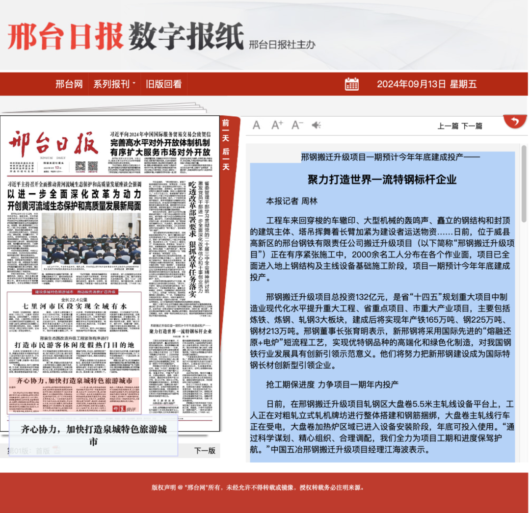 邢鋼搬遷升級項目總投資132億元,是省“十四五”規(guī)劃重大項目中制造業(yè)現(xiàn)代化水平提升重大工程、省重點項目、市重大產(chǎn)業(yè)項目,主要包括煉鐵、煉鋼、軋鋼3大板塊,建成后將實現(xiàn)年產(chǎn)鐵165萬噸、鋼225萬噸、鋼材213萬噸。邢鋼董事長張育明表示,新邢鋼將采用國際先進的“熔融還原+電爐”短流程工藝,實現(xiàn)優(yōu)特鋼品種的高端化和綠色化制造,對我國鋼鐵行業(yè)發(fā)展具有創(chuàng)新引領(lǐng)示范意義。他們將努力把新邢鋼建設(shè)成為國際特鋼長材創(chuàng)新型引領(lǐng)企業(yè)。